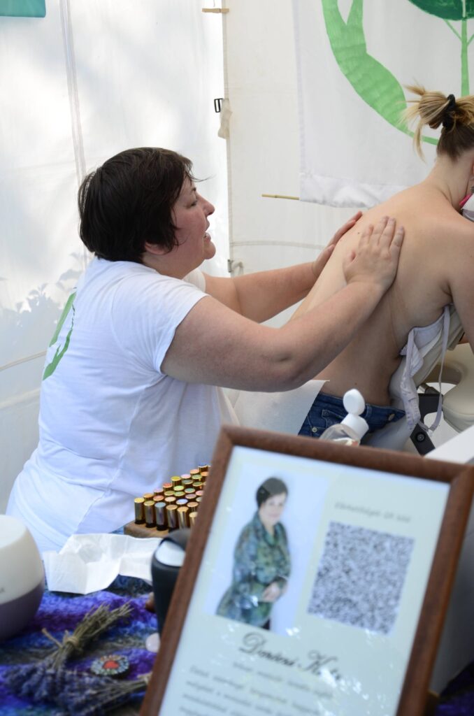 Talpmasszázsal foglalkozom főként amivel segítem feltöltődésedet a fesztiválon. Végzettségeim sokfélék: Lomilomi, rapid masszázs, shiatsu és gyógymasszázs, amely ismeretek támogatják a munkámat. Fontos számomra, hogy figyelmesen és jelenléttel forduljak mindenki felé, aki hozzám érkezik. Emellett kínai asztrológiával is foglalkozom, ami mélyebb megértést adhat a belső folyamatainkhoz és élethelyzeteinkhez.