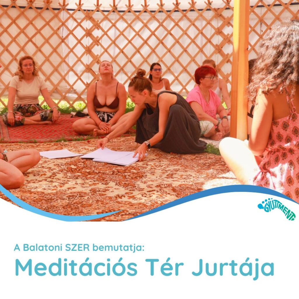 MEDITÁCIÓS TÉR bemutatkozó: a balatoni SZER tagjai által gondozott helyszín, ahol a fesztivál ideje alatt folyamatosan érkezhettek, egy kicsit CSENDesülni, vagy kipróbálni a hangfürdők eszközeit ( hangtál, Gong, hangdrume…) Reggel 7h-kor jógákat, 8h-kor CSEND-es meditációkat, 14h-kor és 20h-kor HANGfürdős meditációkat találtok a jurtánkban. Várunk benneteket szeretettel és CSENDességgel.