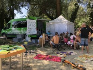A szervezett program során a résztvevők kapnak 1-1 hálót, amivel a kis tó vízből a szitakötőlárvákat, víziskorpiókat, csigákat stb. fogjuk ki. Ezeket edénykékbe gyűjtjük, majd visszasétálunk a buszhoz. Ott a kamera és monitor segítségével nagyítjuk és kivetítjük a megfogott élőlényeket, a határozók alapján meghatározzuk őket és mesélünk róluk. Az élőlények sokféleségéből és a megtalált fajokból lehet következtetni az adott víz állapotára, természetsségére. A program végeztével az élőlények még ott maradnának (csak estefelé telepítenénk vissza őket), ezek után azokat maguk nézegethetnék, határozhatnák meg az arra járók.