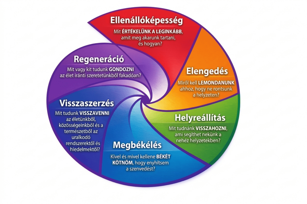 Azok közül, akik követték a társadalmi zavarokról és összeomlásról szóló munkámat, talán kíváncsiak arra, hogy a regeneráció fogalmának elfogadása hogyan illeszkedhet a Mélyadaptáció (DA) meglévő keretébe. Ha nem ismerik ezt a fogalmat, elég annyit mondani, hogy azt jelenti, hogy személyesen és kollektíven igyekszünk alkalmazkodni a társadalmi zavarokhoz és a várható összeomláshoz, amelyek közvetve vagy közvetlenül a klímaváltozásból és az ökológiai károsodásból fakadnak. A Deep Adaptation volt a címe annak a cikkemnek, amely virálissá vált, és több mint egymillió letöltést ért el. Az évek során észrevettem, hogy sok embert inspirált a társadalmi összeomlás előrejelzése, elfogadása vagy megtapasztalása, és ez arra ösztönözte őket, hogy az élet ápolásán dolgozzanak, akár konkrétan, akár általánosságban. Ezenkívül tudatában vagyok annak, hogy a meglévő, 5R-ből álló DA-keretrendszer nem fordít nagy figyelmet környezetünkre. Ezért hasznosnak tartanám, ha többet beszélnénk arról, hogy mit és kit ápolunk a metakrízis és az összeomlás kontextusában. Ezért javaslom a „regenerációt” a DA-keretrendszer hatodik R-jeként a reflexió és a beszélgetés céljából. A kérdés, amit feltehetünk magunknak: Mit vagy kit tudunk ápolni az Élet iránti szeretetünkből fakadóan? Egyszerűbben fogalmazva megkérdezhetjük: Hogyan ápolom az Életet?